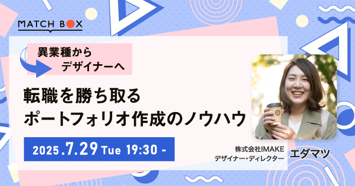 7/29(火)異業種からデザイナーへ 転職を勝ち取るポートフォリオ作成のノウハウ