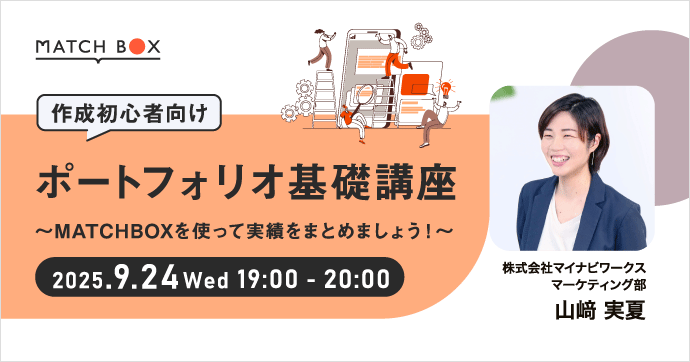 9/24(水)〈作成初心者向け〉ポートフォリオ基礎講座 ~MATCHBOXを使って実績をまとめましょう!~