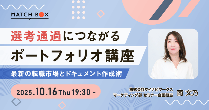 10/16(木)選考通過につながるポートフォリオ講座 ~最新の転職市場とドキュメント作成術~