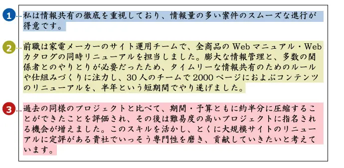 以下3つのポイントを意識した構成にすると、無駄なく説得力のある自己PRを作成することができます。